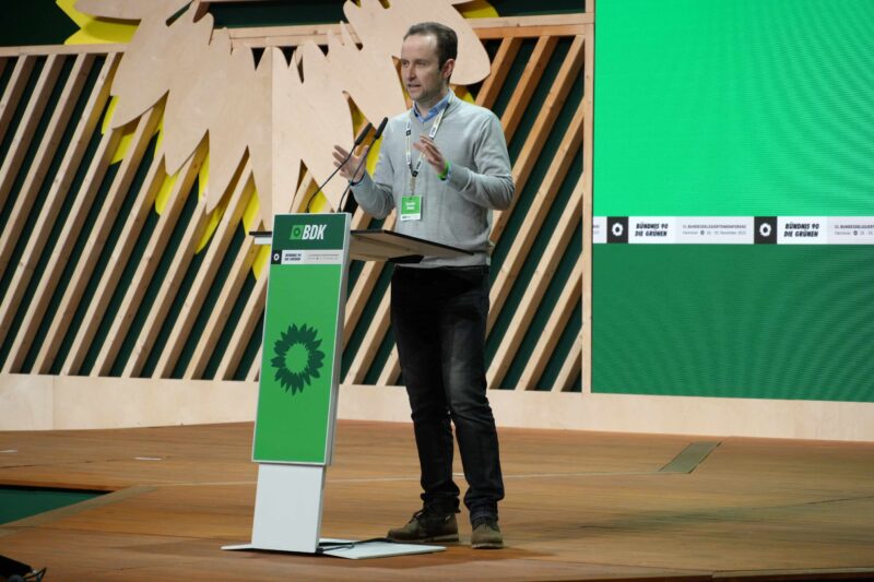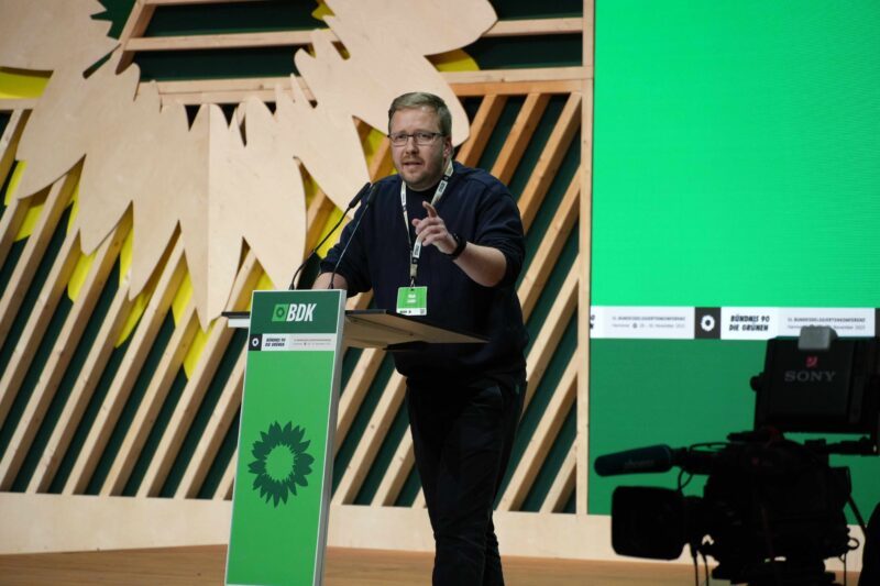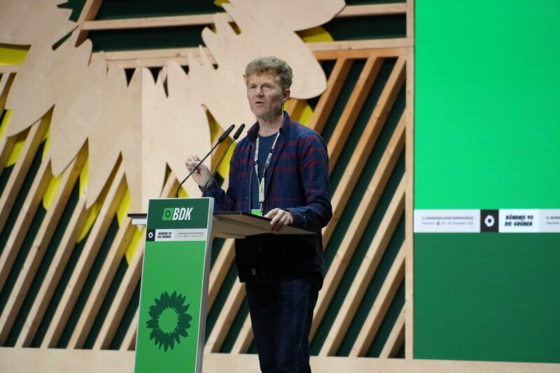 In seiner Einbrungsrede zum Leitantrag „Kurs Zukunft – Sozial gerecht aus der fossilen Abhängigkeit“ machte Felix Banaszak, Co-Sprecher des Bundesverbandes, deutlich, dass der ökologische Wandel nur mit Rücksicht auf die Lebensverhältnisse der Menschen gelingen kann. Wenn sich Familien den Jahresurlaub mit Flug ansparen, ist Scham falsch. Vielmehr müssen die Treiber der globalen CO²-Emissionen zur Verantwortung gezogen und Menschen mit geringen Einkommen stärker unterstützt werden. Dazu fordern wir, überproportionale Gewinne de Fossilindustrie stärker zu besteuern und das Klimageld in 2027 einzuführen.